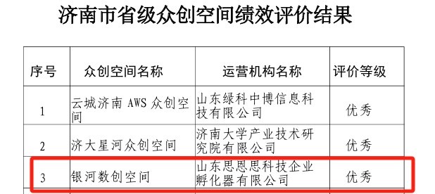 近日,山东省科学技术厅发布了《2024年度省级科技企业孵化载体绩效评价结果》,产发集团旗下济南科技创业投资集团有限公司运营的银河数创空间凭借优异的孵化创新成果及丰富的创新创业服务经验,获评“优秀”等级。