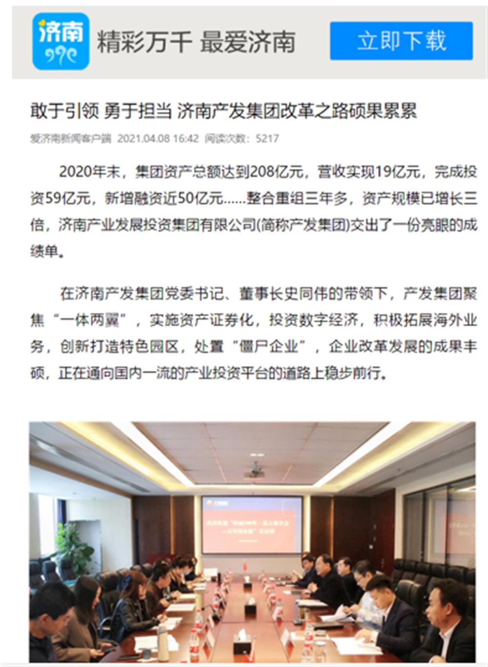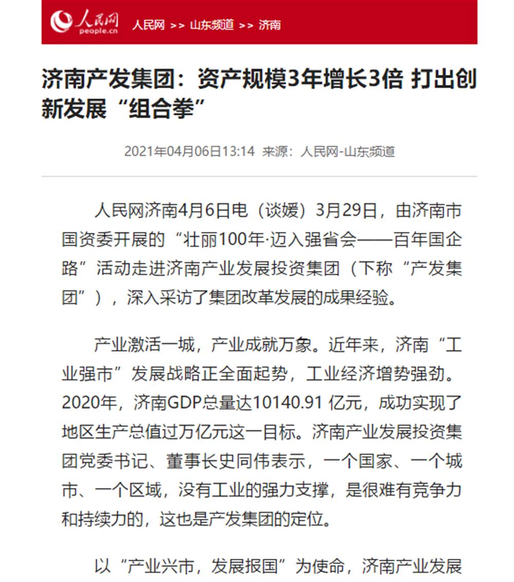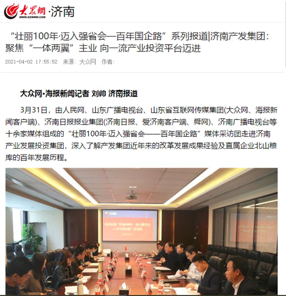 近日,市国资委举办的“壮丽100年·迈入强省会——百年国企路”媒体团一行到访济南产发集团后,人民网、大众网、闪电新闻、济南电视台、济南日报、带济南等多家国家、省市级媒体聚焦报道了集团改革发展的成果经验。
