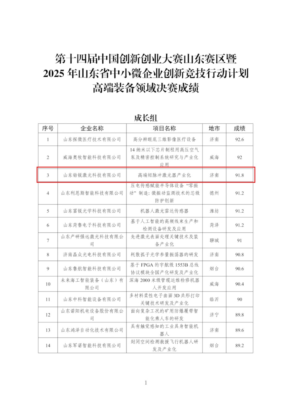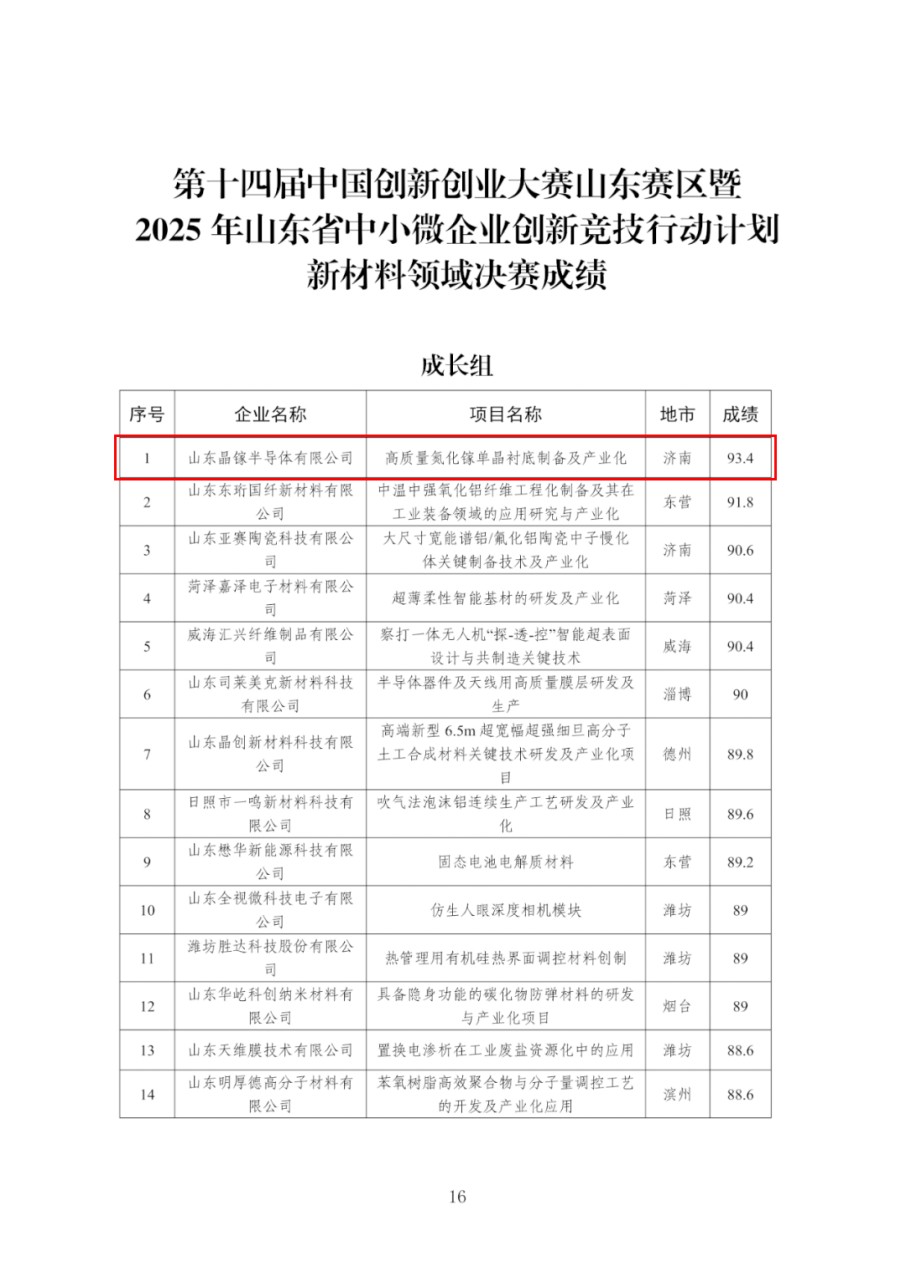 此次大赛汇聚了众多优秀的中小微企业,围绕新一代信息技术、高端装备制造、新材料等多个产业方向展开激烈角逐。其中,山东晶镓半导体有限公司凭借其在新材料领域的卓越创新和技术突破,荣获新材料领域成长组第一名。山东铂锐激光科技有限公司在智能装备领域表现突出,荣获高端装备领域成长组第三名。