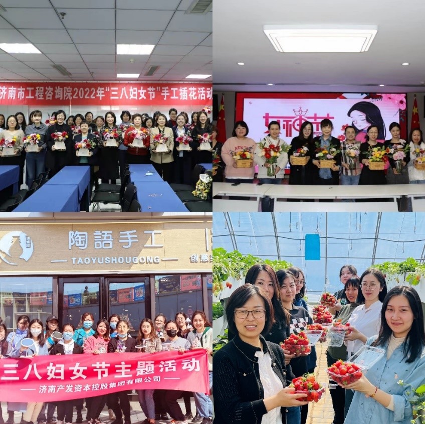 集团机关举办了“茶语花香”主题活动,专业茶艺师在现场进行茶道表演及品茗互动,女职工们在花艺师的指导下创作出一份份独具匠心的花艺作品;市工程咨询院及山东中和碳排放服务中心同期分别开展了丰富多彩的插花活动;产发资本集团及权属企业开展工艺品、烘焙、干花等手工制作活动,增进了女职工之间的沟通与交流;产发企管集团及权属企业走进现代都市农业精品园开展草莓采摘活动,享受收获的喜悦。