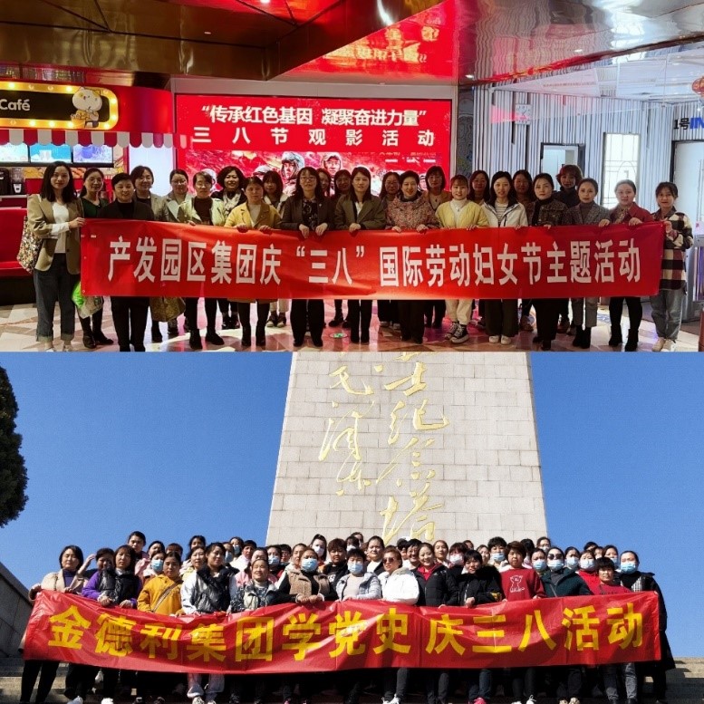 产发园区集团组织女职工开展庆“三八”爱国主义教育主题活动,观看了以抗美援朝战争为背景的电影《长津湖之水门桥》;金德利集团将三八妇女节与党史学习相结合,在英雄山开展女职工“学党史、心向党,凝聚发展动力”活动。